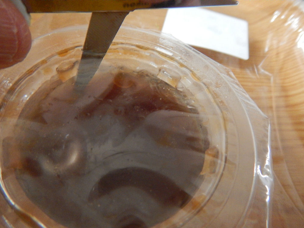 下の写真はネオ黒糖ロールを包丁で切った写真です、中に、とろ~りマーガリンが入っていますね。