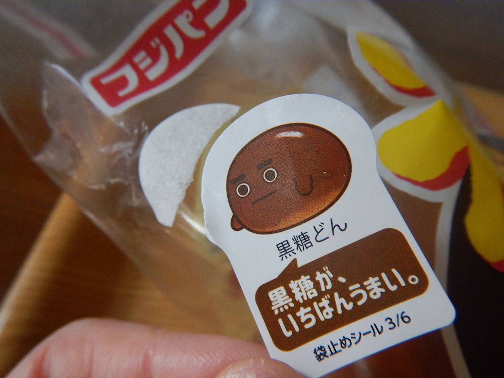 ネオバタくんが可愛いネオバタロール。スーパーのパン売り場に行って、今年からカレーパンを食べよう!と思っていたけど、黒糖って体にいいのね・・と思って、ネオバタロールの中の「ネオ黒糖ロール」を買ってしまいました。ネオ黒糖ロールは「黒糖どん」なんだって。。