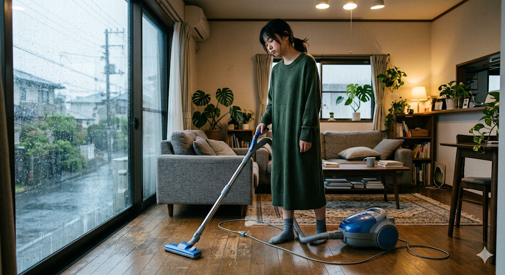 今日は雨だから、掃除をしよう・・・でも眠い。眠いけど、外には出ないし、掃除をしました。