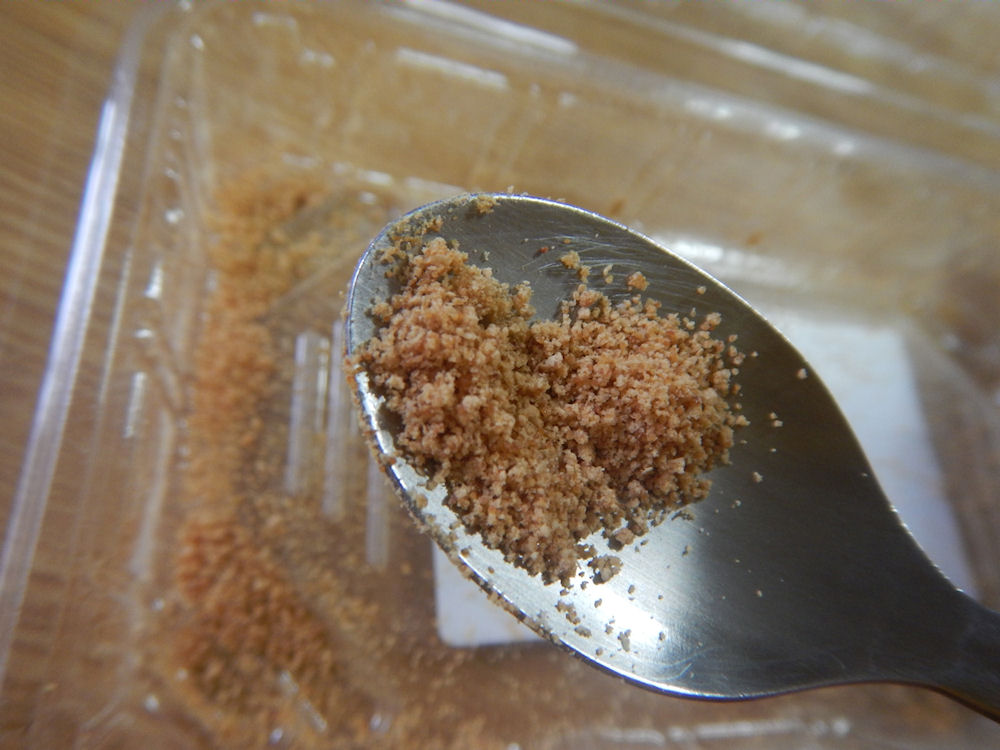 あわしま堂の抹茶わらび餅を食べ終わると、容器の中には「きな粉」が残ってますね。調べて見ると、あわしま堂のきな粉は、しっかりと焙煎された「深煎り(ふかいり)」タイプが特徴で、ごく微量の「砂糖」や「塩」が絶妙なバランスで配合されているそうです。