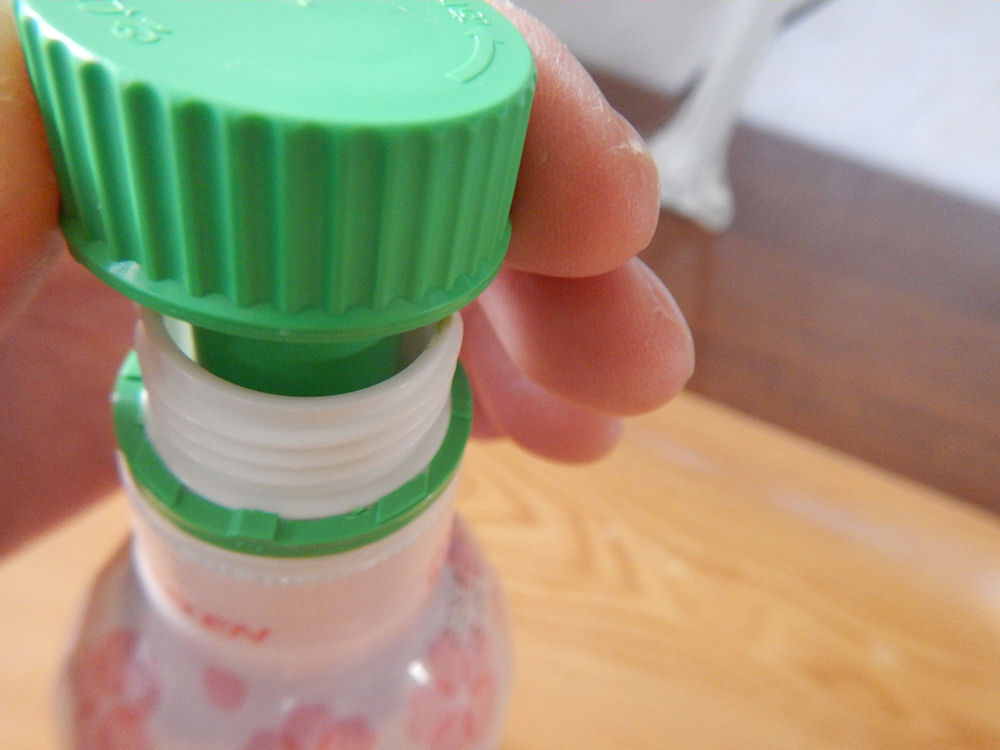 キャップを開けた時に中に落ちた中ブタです。キャップを開けるだけで中ブタが外れる・・・考えた人、スゴイ!