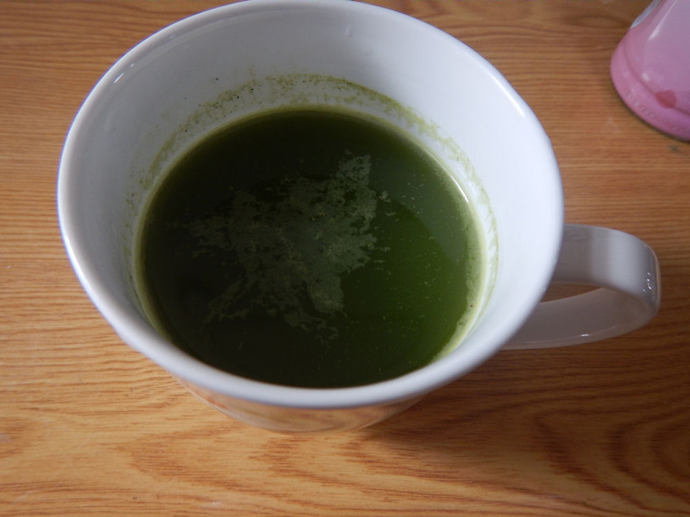 色が、濃い緑色です。この色、まさに抹茶です。。。ただ、コップからは、ビニールっぽい香りがします。