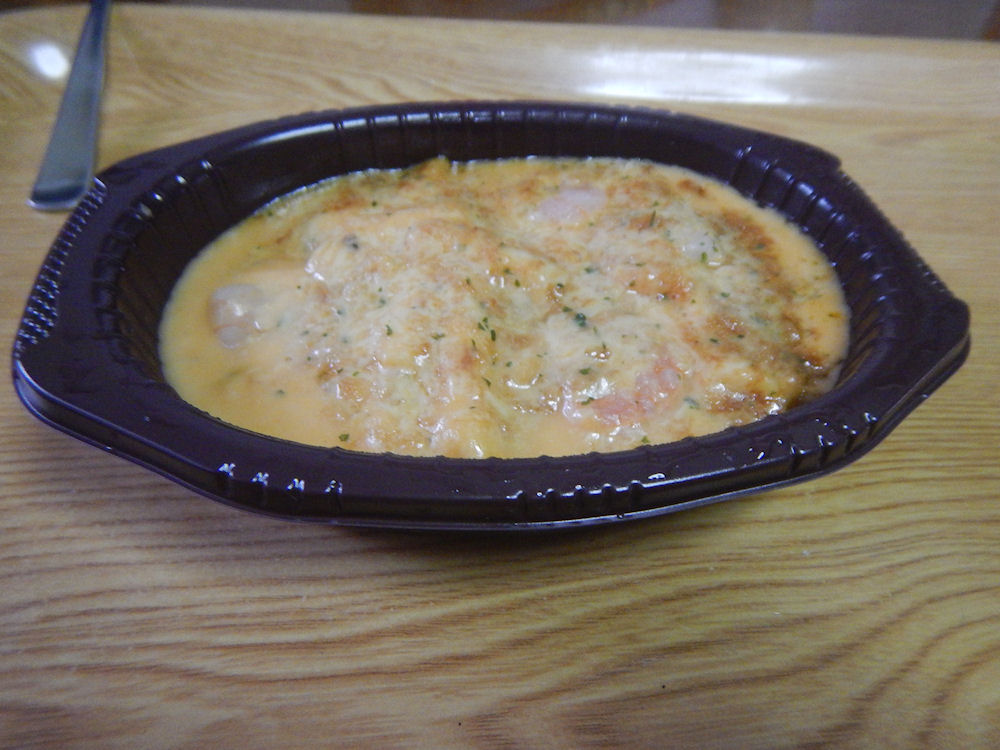 明治によれば「旨味あふれるオマール海老ソース 濃厚なミルクの味わい 芳醇な香りのチーズと満足できる具材感」という海老グラタン。