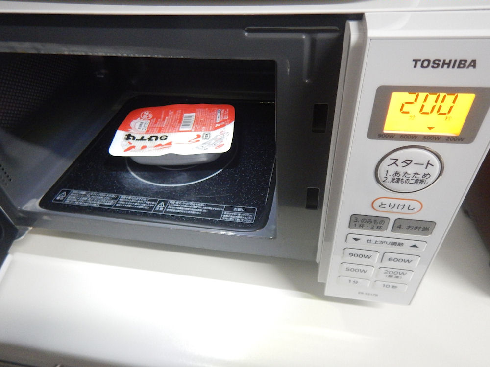 サトウのごはんを電子レンジで温めました。500Wでも600Wでも2分なので、500Wで温めました。