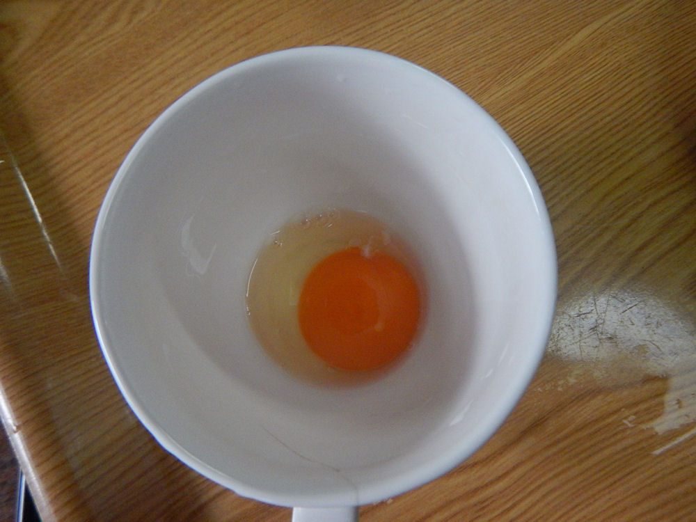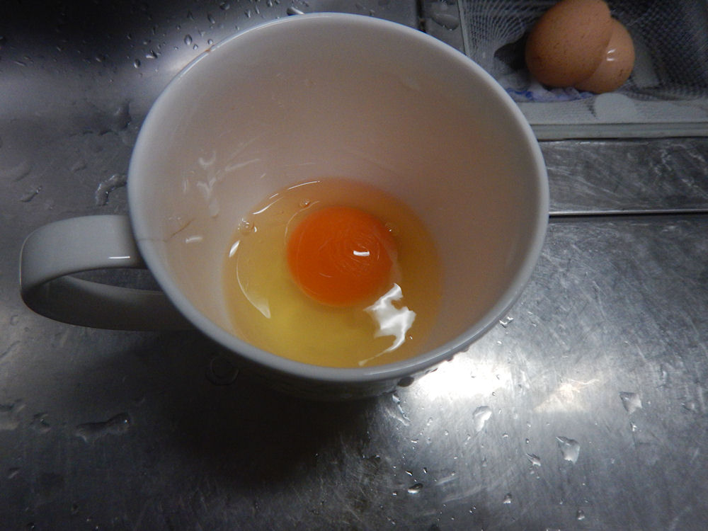 なかなか白身が落ちてくれません。美味しい卵は白身も違う。。