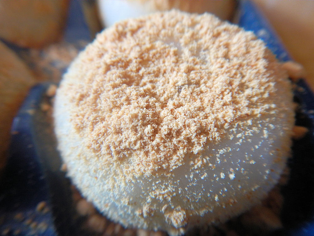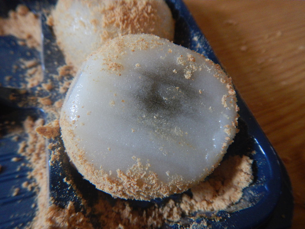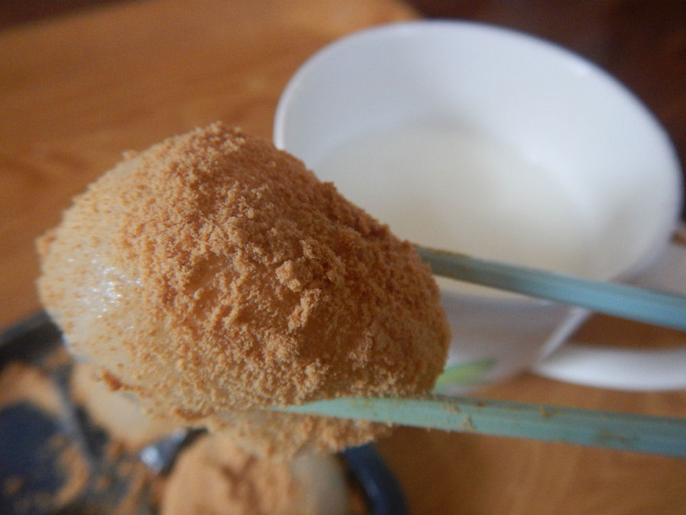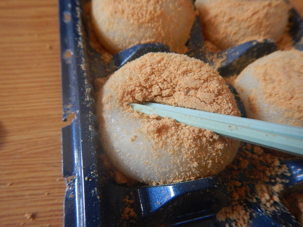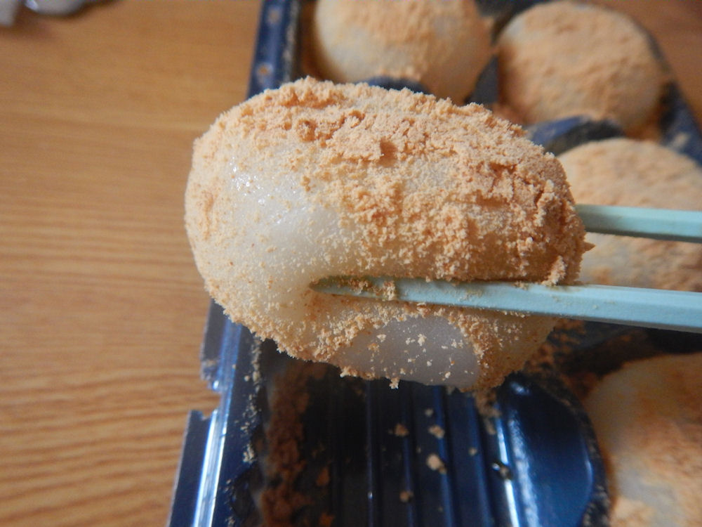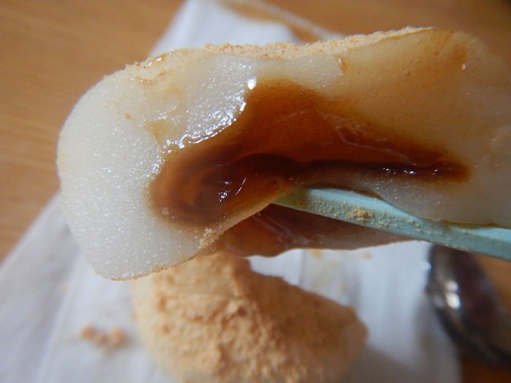 次は生地です。少し黒蜜が残っていますが、モチモチして、きな粉の甘きが美味しいです。