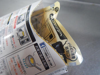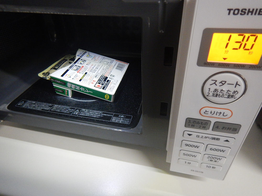 最初に電子レンジで温めます。2個の場合は500Wで1分30秒。ラップは無しです。