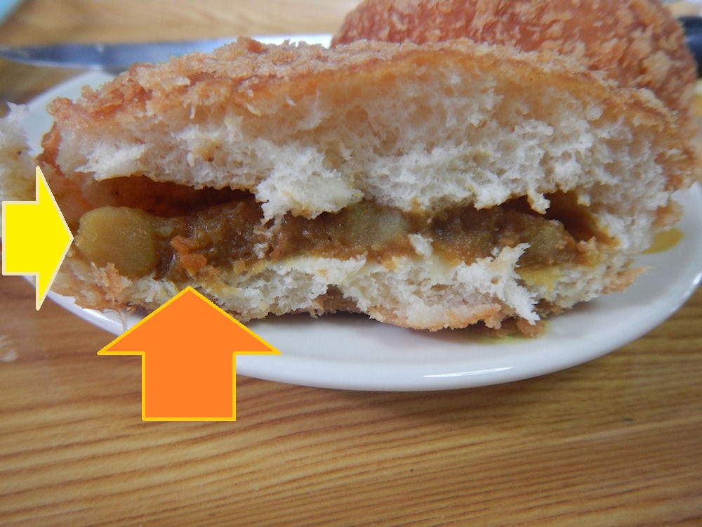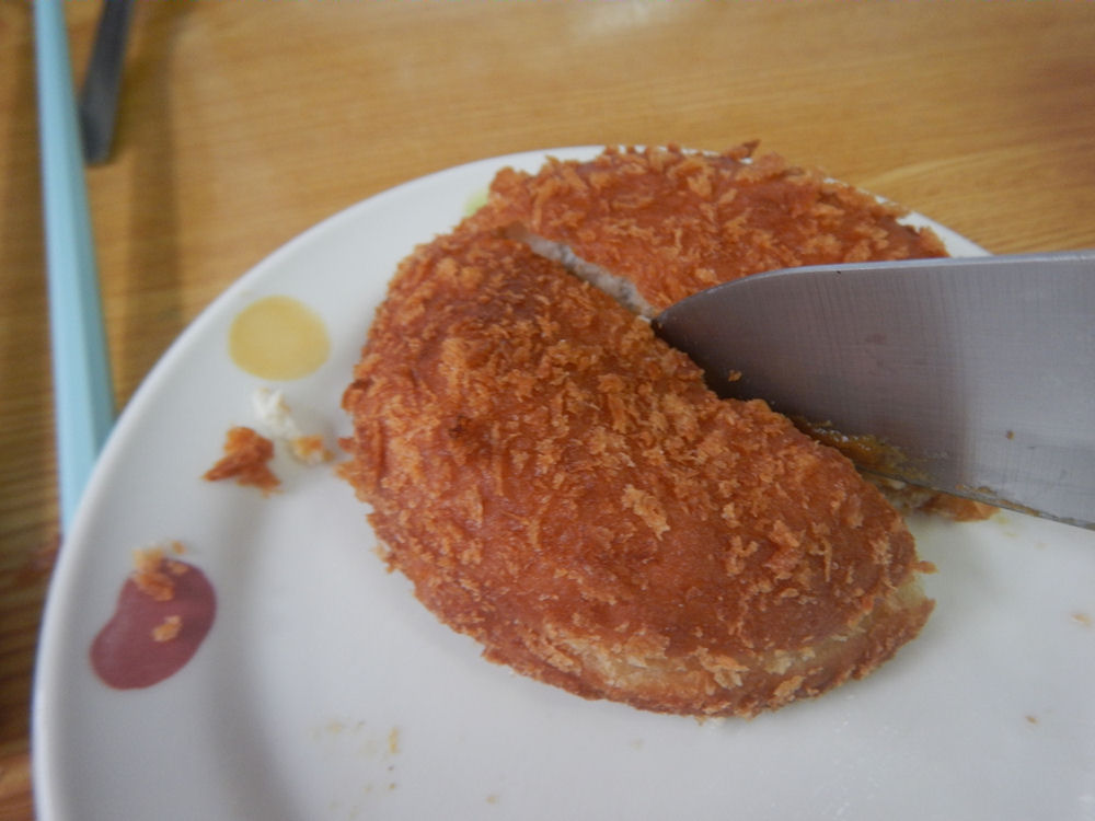 食べてみると、アツアツのハンバーグは、とろ~り舌触り。ちょっぴりチーズ味の後からの、あっさりした塩味と脂の味が美味しいです。