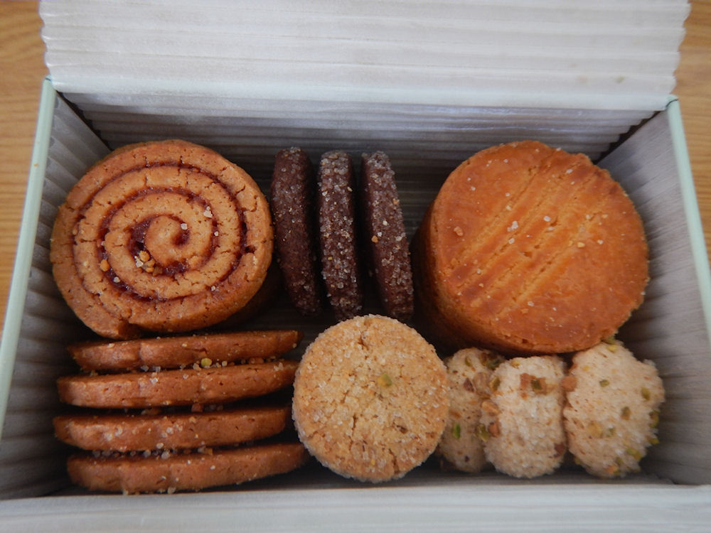 大きさの違うクッキーが仕切り板なしで美味しそうに入ってますね。この入れ方がスゴイ!