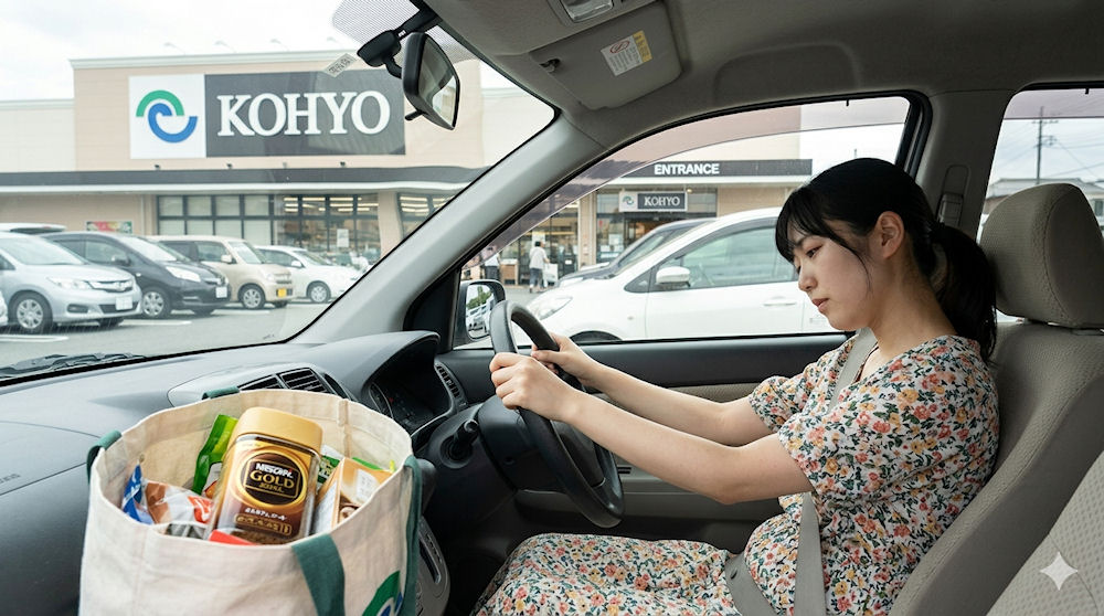 眠たいけど、自動車を運転して、いつものスーパーに買い物に行きました。