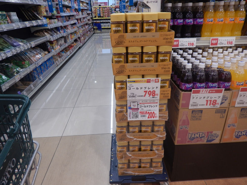 今日はネスカフェゴールドブレンドの特売日。普段は900~1,000円位するけど、今日は798円。さらにクーポンでネスカフェゴールドブレンドが200円引きと3%引きで574円。眠たくても買いに行く価格。