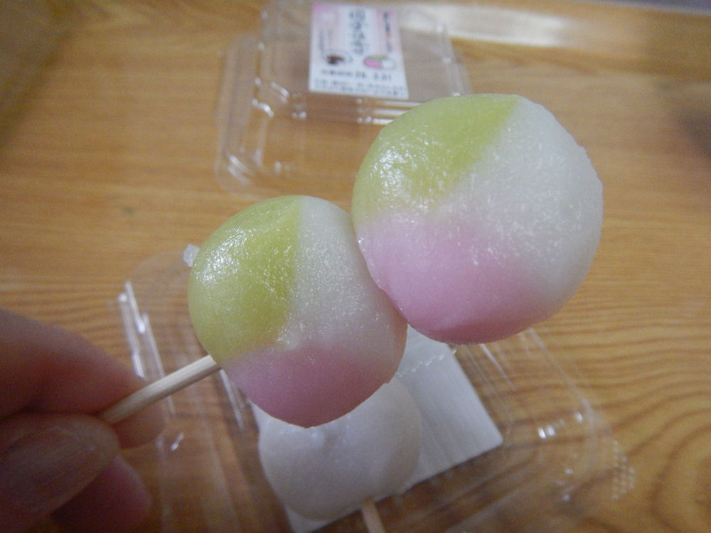 春と言えば三色団子!あわしま堂の三色団子は美味しいけど、不満が一つ・・・串に刺さっていない!