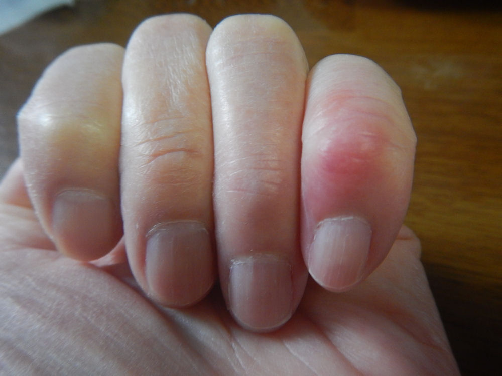 下の写真は1月10日に撮影した、指の写真。他の指は問題なのですが、小指だけ赤くなっています。