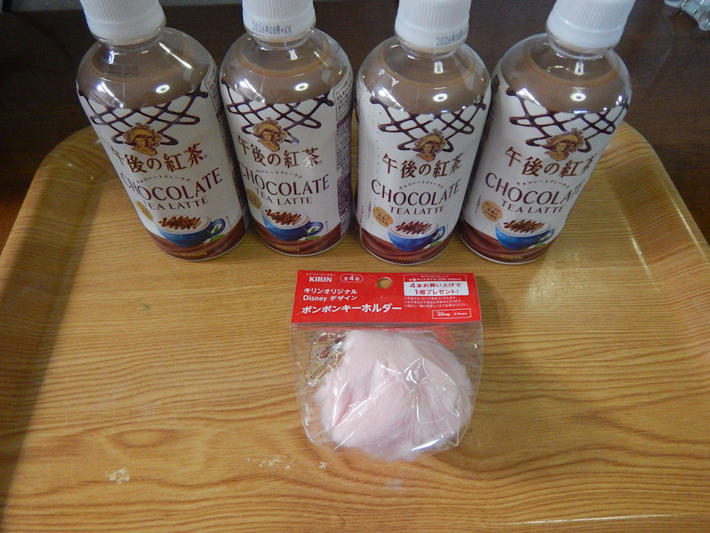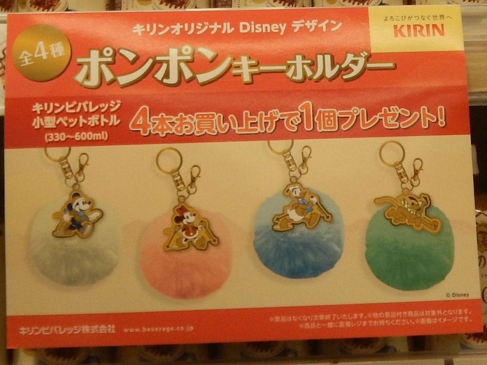 キリン午後の紅茶ですけど、4本買うとキリンオリジナル「Disneyポンポンキーホルダー」がもらえるのです。