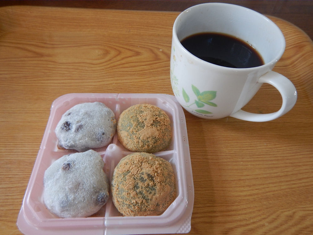 大福餅を食べながらのドリンクと言えば日本茶ですが、今日は眠たいのでブラック珈琲を飲みながら食べました。