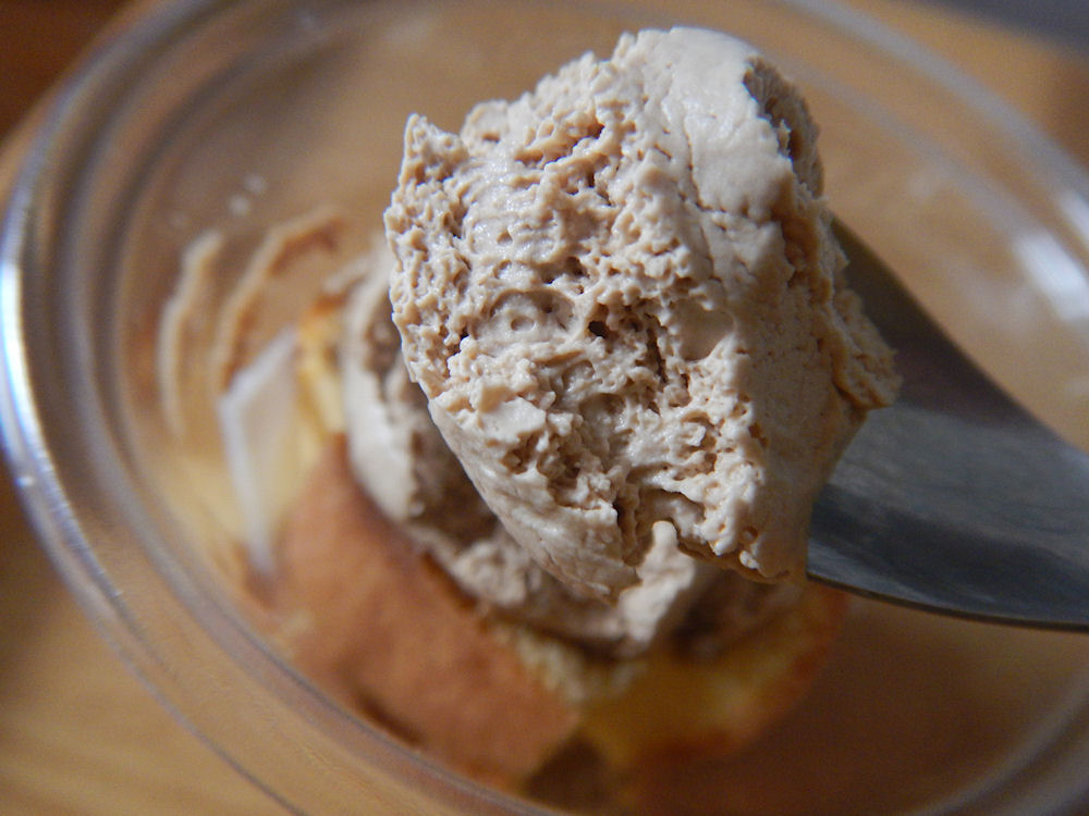まずはコーヒー・ホイップクリーム。ふんわりしたクリームは、ホイップクリームの脂と、コーヒーの苦さが口の中を占領します。苦さがある甘くないホイップクリームですね。